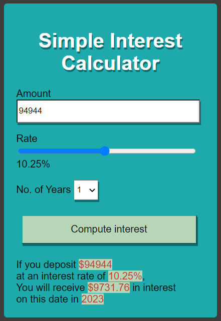 This web application card was programmed from scratch using HTML, CSS, and JavaScript. It can be easily embedded in an existing site or application or expanded to include other types of calculations and visualizations.