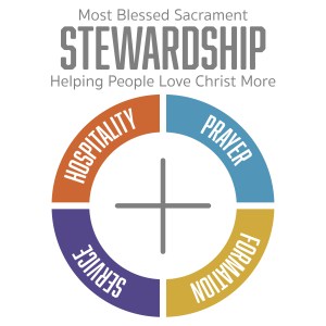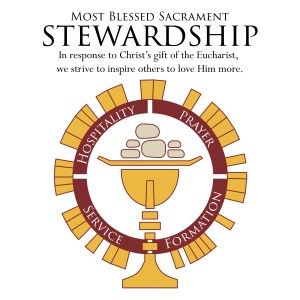 The Stewardship Committee at Most Blessed Sacrament Church requested a new logo based loosely on the diocesan stewardship logo, Communion, and features of their sanctuary.